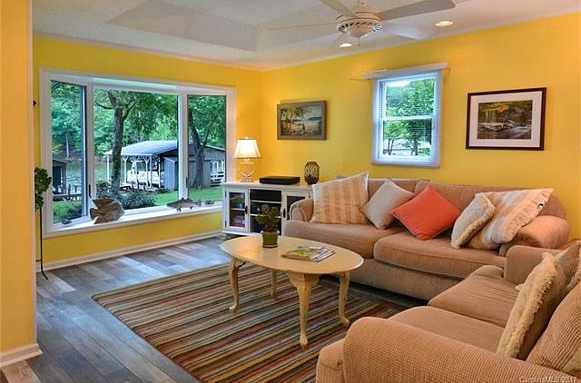 Location, Location, Location! Gorgeous setting! Perfectly flat lot w/ a big view of the cove & main channel. Stunning boathouse w/ big sitting/dining area over the water! 3 bdrms, 2 baths w/ large, open great room w/ fireplace, large breakfast bar & separate dining area. Lots of glass overlooking picturesque covered porch areas, landscaped yard & boathouse! Master on the main & very accessible to the lake with concrete sidewalk, shaded & super nice place to swim & entertain at the boathouse.