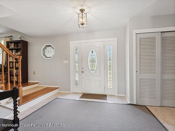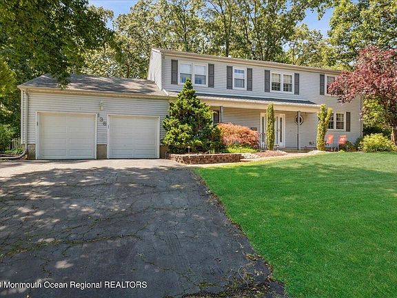 Gorgeous Center Hall Colonial located in the sought-after Stonehurst Development in Freehold Township. This 4 Bedroom 3.5 Bath home features numerous updates and amenities throughout. Features include large inviting foyer, spacious sun-filled eat-in kitchen with quartz countertops, new kitchen sink and faucet, ceiling fan, bay window, and radiant heated floors, entertainment-sized dining room with chair rail, elegant formal living room with custom built-ins, new flooring and french doors, impressive great room with gleaming hardwood floors, and large laundry room with access to backyard. The second level offers a loft area, generously sized bedrooms with ceiling fans, princess suite with oversized walk-in closet and full bath, primary suite addition with vaulted ceiling, ceiling fan, and dual closets, and beautiful primary bath with double sinks, shower, and tub. A partial basement provides additional storage and/or living space. Attic offers new insulation, generator hook-up in place, 2-zone HVAC system, new interior doors, and freshly painted throughout. The exterior boasts a charming front porch, oversized driveway, direct entry 2-car garage, landscape lighting, new deck with custom awning, paver patio overlooking tranquil backyard, and situated on over 1/2 acre on a tree-lined street. Top-rated Freehold Township school district. Ideally located to all major highways, NYC transportation, shopping, and beaches. A BEAUTIFUL HOME AND RARE FIND!