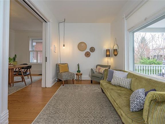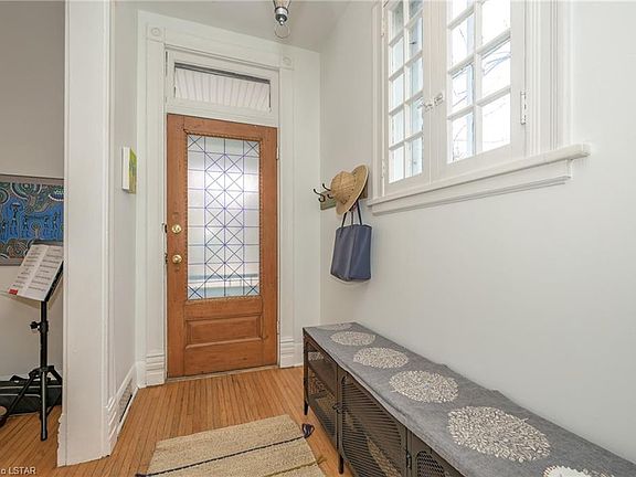 Perfectly Charming Wortley Village with 4 Bedrooms, 2.5 Baths, Big Front Porch, Media/Play Room, Pool Sized Yard, a Few Steps to the Public School, and a Short Walk to The Village. This Light Filled Century Home boasts Tons of Character with Original Details Like High Ceilings, Tall Baseboards, Plenty of Big Windows (most updated within last 5 yrs) with Original & Newer Hardwood, Pocket Doors and Wainscotting. Step across the Big Front Porch into this Bright and Airy Foyer, Pass the Living Room with Original Pocket Doors into the Generous Dining Room, Now the Open Concept Eat-In Kitchen with Huge Island and Cathedral Ceiling Overlooking the Sunken Family Room with WoodStove and a View of the Landscaped Yard with Terraced Decks, Greenhouse, Raised Garden Beds and Fully Fenced with a Large Garden Shed with Loft Storage. 3 Bedrooms on the 2nd with Secret Passageways between Make for Special Children's Space. The 2nd Floor Bathroom with Vintage Clawfoot Tub and Shower Surround are Great for Bathtime. The Principal Retreat on the 3rd Floor with Your Private 3Pc Bath for a little quiet time at the end of the day. With the Awesome Sunken Media/Home Theatre Room with Surround Sound and Projection TV Included You'll want overnight Night to Be Movie Night. Central Air for those Hot Summer Nights (Yes They're Coming) and Room for the Pool You've been Dreaming of, make this the Perfect Village Family Forever Home.