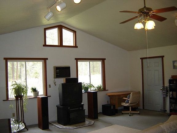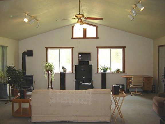 Private Treed 10 acres with abundant wildlife and serene views. Home features include a living room w/soaring vaulted ceilings and a gas stove, open & bright kitchen with breakfast bar, lots of cabinet & counter space, additional gas stove in separate family room wrapped in T & G Pine, Three covered porches to enjoy the views, plus a large shop and additional barn.