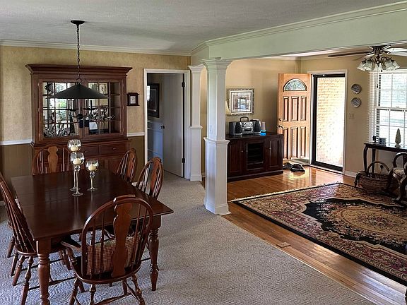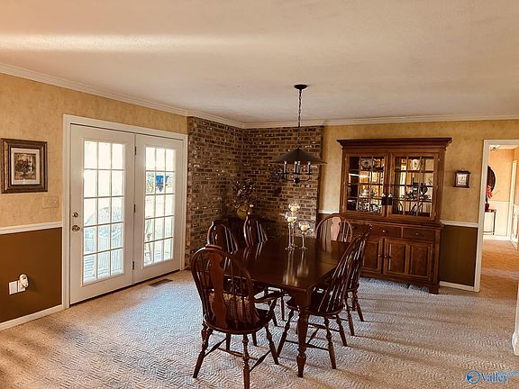 New price! This well-maintained full brick rancher sits on two lots and is located on the North side of Arab. The home has tons of character. Most rooms have original wood flooring. There is an open living and dining area, galley style kitchen and large laundry room. All appliances remain. Dining room has free standing gas fireplace with brick surround and French doors that open onto a large, covered deck. There are three bedrooms and three bathrooms. Outside there are two storage buildings and a shed and partial privacy fence. Home also has a two-car attached carport. Roof was replaced in 2022 with new gutters. HVAC is approximately six years old. There is fiber internet and natural gas.