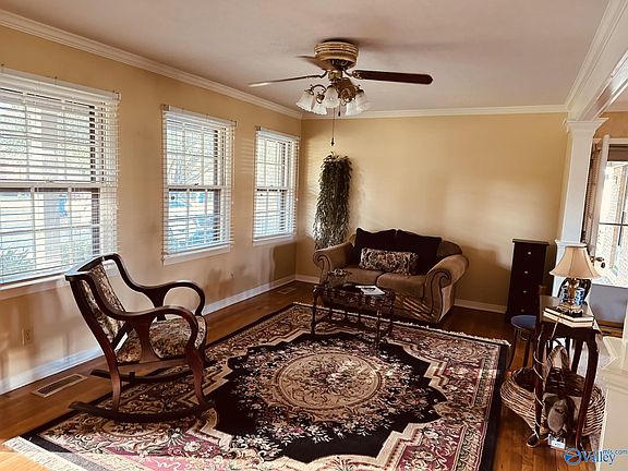 - Features: Ceiling Fan(s), Crown Molding, Window Cov, Wood Floor