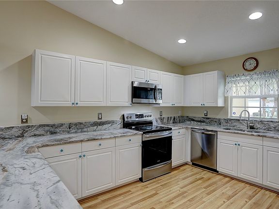 Sturdy CBS construction with 3 bedrooms and a roomy 2 car garage. Coastal kitchen boasts of white cabinets, s/s appliances, granite countertops. You will appreciate the easy care plank flooring throughout the home. Great room opens to enclosed porch with tile flooring for year round comfort. Pull up a chair on your paver patio and watch the lovely Florida sunrise. Main suite offers vanity with granite countertop plus a tiled walk in shower. Two additional bedrooms make it easy to have friends a family come to visit.