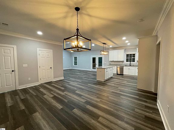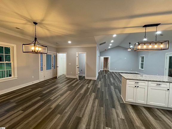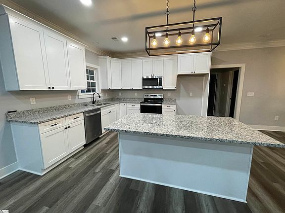 ***This address IS located in an eligible area for USDA loan*** Lake Hartwell Living! New Construction home open floor plan with 4 bedrooms 2 ½ baths sitting on an ½ acre lot. The quality of work in this home is amazing and not compromised. Beginning at the front entrance of the foyer, dining area and kitchen with crown molding and LVP flooring throughout the living space. The family room with vaulted ceiling with a ceiling fan an office/flex room off from the living room. A beautiful kitchen with soft closed white shaker cabinets and granite countertop, stainless stain appliance. This split floor plan home has the master bedroom located right from the kitchen area. The master bedroom has a coffer ceiling, crown molding, ceiling fan and walk in closet. The bathroom with LVP flooring, granite countertop and double vanity sink. The other bedrooms are located right from the living room. The full bathroom with LVP flooring, granite countertop and double vanity sink. There's a large laundry room leading to the oversized double car garage. If you love the lake, you are only .08 miles off Double Springs Rd. for lake access. If measurements are important buyer must verify