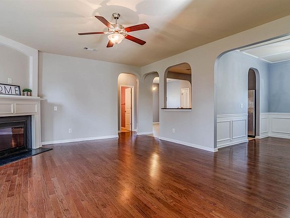 - Living Room: Fireplace, Floors-Hardwood, Ceilings-High (over 9 Ft), Ceiling Fan
