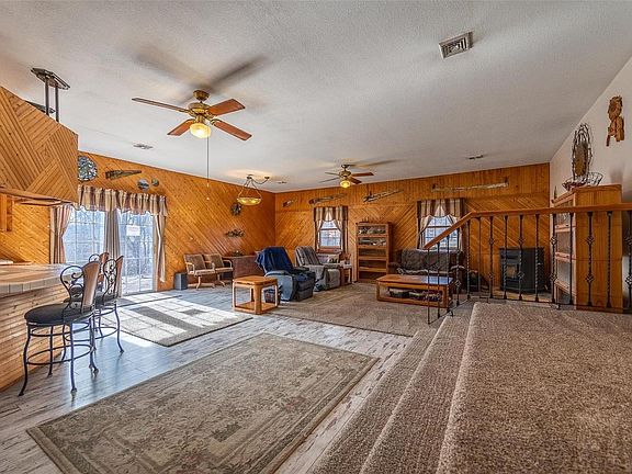 Get ready to fall in love! This gorgeous 10+ acre property, possibly hobby farm, has so much to offer! As you are approaching the home, you will love the open field in the front with highway frontage. This would be perfect for horses, cows, and the back half of the property is wooded. The home is very spacious with over 2100 sq. ft, 3 bedrooms (possibly 4) and 2 full baths. As you enter the home, you will find a sunken living room that is very large and open and a kitchen to off to the side with stainless appliances. The master bedroom suite is off the living room and features a nice size onyx shower. Down the hallway you will find the laundry room, office/flex space, a second full bathroom and the other 2 bedrooms. There is a 2 car attached garage, as well as a 3rd detached. Don't forget the huge slab that could easily be the foundation for a new shop, a large pole barn with plenty of room for all your hobbies! Public river access nearby and a short drive to I44, this one is THE ONE!