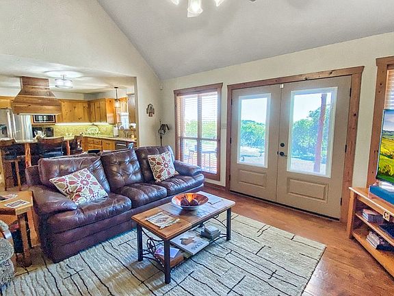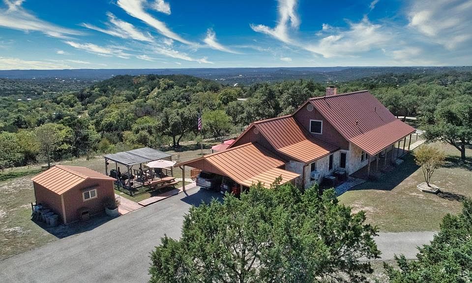 Discover authentic Hill Country Craftsmanship in this charming 3-bedroom, 2.5-bathroom home nestled on 10 acres. Revel in the sweeping southern vistas from the expansive back deck. This well-appointed residence boasts a thoughtfully designed, contemporary kitchen, a striking floor-to-ceiling rock fireplace in the living room, and a spacious great room with a full-length bar. Additional highlights include a private office, generously sized master bedroom, and workshop. With paved road access, fenced and cross-fenced areas, and a seasonal pond, this property offers a delightful blend of comfort and countryside allure.
