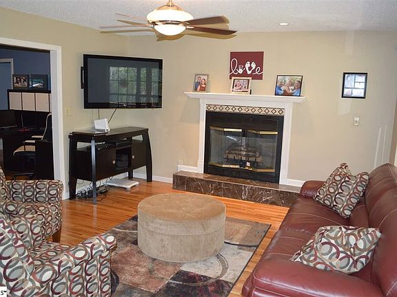 This spacious 4 Bedroom, 3 Bath home boasts almost 3,000 square feet of living area! Situated on a corner lot of almost 1 acre, this property is so convenient to area parks, lakes and other recreational opportunities as well as shopping and schools. A huge covered front Porch provides a wonderful area for entertaining and relaxing! A portion of this Porch could easily be screened. Upon entering the home, you'll appreciate the vaulted ceiling in the entry and the Great Room! With hardwood flooring, this space will accommodate the largest of gatherings and is open to the Kitchen/Breakfast area. Hardwoods throughout the home with the exception of the Baths, Kitchen and Laundry Room which feature ceramic tile. The Kitchen is a cook's dream with Quartz countertops, beautiful hickory cabinets (with pull-out drawers), a stainless 5 burner gas range with 2 ovens, stainless dishwasher, disposal and more! The Master Bedroom is generously sized and has a walk-in closet and Bath with separate shower and jetted garden tub. The 2 additional Bedrooms on the main floor share a hall bath, with both rooms being large. The Living Room has a Fireplace with gas logs and provides an area for family to spend time together. The Dining Room is currently being used as an Office/Play Room. The Laundry Room does have a mop sink. Upstairs, there are so many options. A grand Bonus Room boasts a wet bar with mini Dishwasher and sink, not to mention space for in-laws or possibly a teen suite. The 4th Bedroom is also located on this floor as well as a full Bath. A separate HVAC system is used for this floor. Two staircases are provided. The Deck features a hot tub and is, like this home, large enough to entertain big parties and gatherings. A two car Garage, newer heat pump, electric water heater and sealed crawl space complete this home. Propane is utilized for the range and the fireplace. Property is being sold as is. An hour or less to lakes, mountains, Hendersonville and Asheville, NC, 2 +/- hours to Charlotte or Atlanta, 30 minutes to Greenville and just 20 minutes to the Swamp Rabbit Trail! Call for more information.