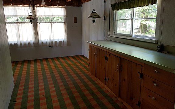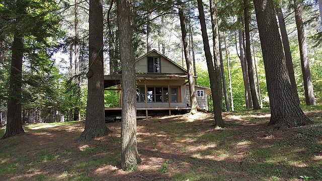 Just in time for summer! Cottage on Higley Flow with 2 bedrooms and bath. Covered porch with new deck overlooks the water, and there is a nice gentle slope to the water. Sellers lease the beach waterfront area and peninsula from Brookfield for their exclusive use. There is a dock, and great views from the waterfront.