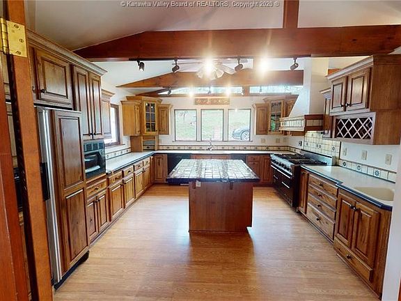 Spectacular home beginning w/inviting, gourmet cook's kitchen w/vaulted/beamed ceiling, lots of cabinetry/counter space, upscale appliances, prep sink & 4 x 5 work island w/BB. DR transitions kitchen & sunken GR w/FP. Three main floor BRs incl owner's suite. Lower level rec room w/FP, 4th BR, 2nd kitchen, den & half BA w/exterior access. Would make nice 2nd living quarters or in-home office. Large deck w/panoramic view. Whole house generator. Private setting at end of dead end road.