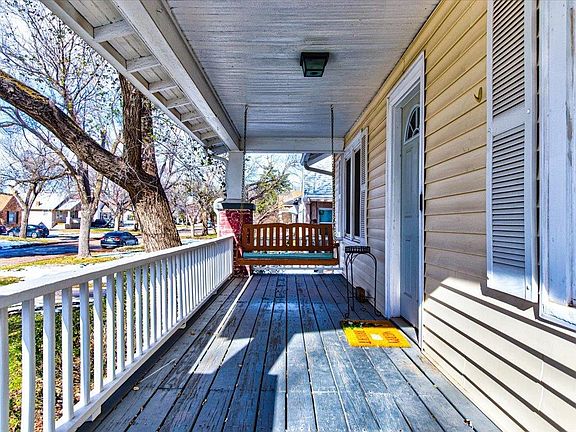 This Adorable 2 Bedroom, 1 Bath Bungalow is super clean, inside and out. The front porch features a cozy porch swing for your relaxation and the brick patio has a fire pit. One Car oversized garage with lots of room for a work bench or storage. Cute kitchen has nice storage space including a pantry, all appliances stay including washer/dryer. Newer Oak cabinets in kitchen, and tile in bath and kitchen. Refinished hardwood floors. Fully Fenced. Newer electrical & Plumbing. Well Maintained. Located near Friends University and Newman University as well as Wichita's Baseball Stadium and Delano Business District. This home has lots to offer! Showings available from 8AM to 6PM with 1hour notice.