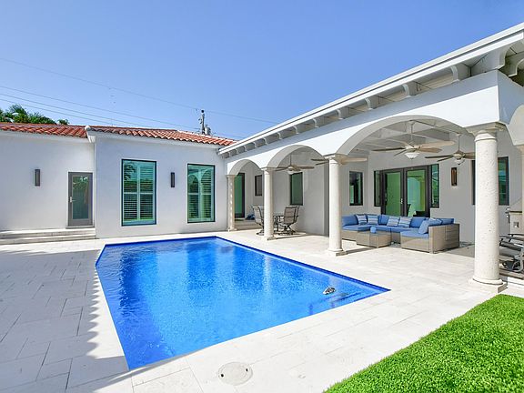 Magnificent completely reconstructed Boca Raton beach unique courtyard style home with 3 bedrooms 3 bathrooms in main house and separate 1 bedroom 1 bath guest house. Master bedroom & bathroom, 2nd bathroom, family room and guest house are new construction in 2022. This home has the finest modern finishes and fixtures throughout. New salt water pool 2021, decking, outdoor kitchen and landscaping. Hurricane impact windows and doors throughout the entire home and whole house natural gas generator. This home is located just 3 blocks from the ocean in the heart of Boca Raton 's finest beach front neighborhood Boca Riviera.