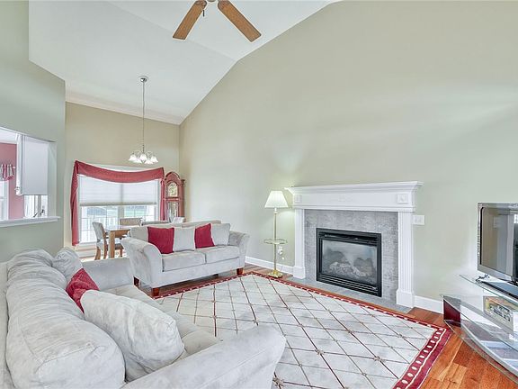 Welcome to 136 New Tudor Rd, a spacious, versatile 3-bedroom, 2-bath ranch offering 1,447 SF of comfortable living space in a desirable Pittsford neighborhood within the Rush-Henrietta school district. A paver walkway and front porch welcome you into a two-story foyer, where wide-plank cherry hardwoods extend throughout most of the home. The living and dining area flows seamlessly under cathedral ceilings, anchored by a gas fireplace with wall switch, while an eat-in kitchen—equipped with gas stove, refrigerator, dishwasher, microwave, disposal, pantry, and a brand-new faucet (10/25)—opens to the family room through a convenient pass-through window. A sliding door leads to a covered back porch and paver patio overlooking a private, tree-lined yard. The primary suite features a stepped ceiling, walk-in closet, and a full bath with jetted tub and separate shower. Two additional bedrooms share a second full bath with a brand-new vanity (10/25). First-floor laundry and a flexible third bedroom that can serve as an office or den add convenience and adaptability. A finished basement with drop ceilings, lighting and an electric fireplace provides additional living space, while the fully drywalled, finished two-car garage and central AC add comfort and convenience. The furnace will be professionally cleaned and inspected on 10/14. Located in the sought-after Jefferson Estates, this 2004-built home offers both style and a prime location close to shopping, dining, and easy commuting. Delayed Negotiations Due Tues, 10/14 @ 9am.