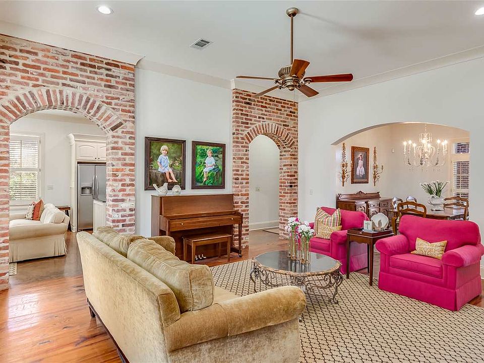 Bright and well-appointed space make this custom built home perfect for family and entertaining. The open foyer and formal dining flow seamlessly through the brick archways into the kitchen with oversized island and keeping room. The floor plan boasts privacy for everyone with four bedrooms and three bathrooms downstairs and a fifth bedroom/bonus room and bath upstairs. Storage abounds throughout the home with two pantries, cabinets in the laundry room, office, master closet, and even the garage! The large backyard and covered porch complete the home. Gorgeous pine floors, tall ceilings, granite and travertine countertops, two fireplaces, and plantation shutters throughout add to the beauty of the home. Zoned for Madison Station Elementary and close to shopping, dining, and I-55, this home is a must see today.