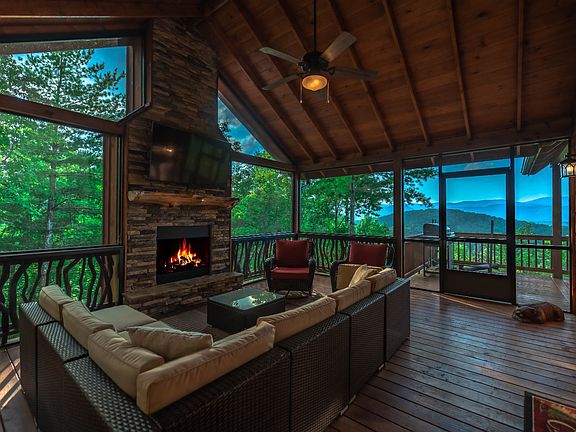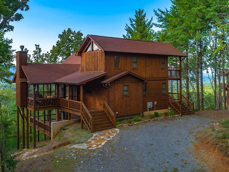Gorgeous cabin with view of the Cohuttas, Tennessee, North Carolina, and Georgia Mountains! Enjoy the fire pit area, screened-in party porch, and hot tub!