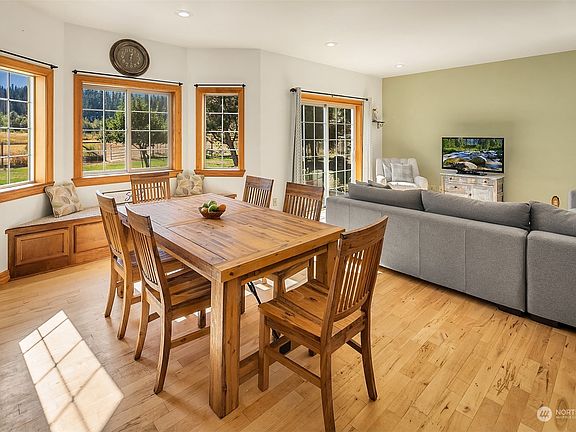 Enjoy gorgeous mountain views out every window. This lovely home nestled on just over 3 acres of irrigated equestrian land is located just off I-90 in the "Coyote Creek" gated community, just a hop, skip & jump away from Sun Country Golf Course, Yakima River, Suncadia, Washington State Horse Park & Palouse to Cascades trail. So much outdoor recreation you will never want to leave the area. Mature landscaping/irrigated yard lovingly maintained. Apple, cherry, pear & gooseberry trees, PLUS blueberry & raspberry bushes! Tons of gardening space. Privacy abounds in your own back yard paradise. Home interior freshly re-painted, main floor bedroom/office den, sparkling hardwoods, marble kitchen countertops, stainless appliances, spacious bedrooms.