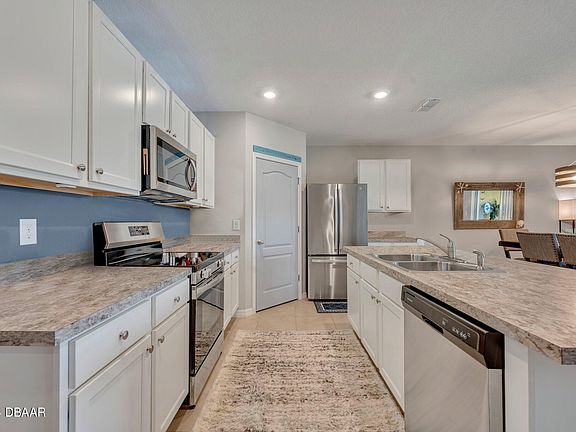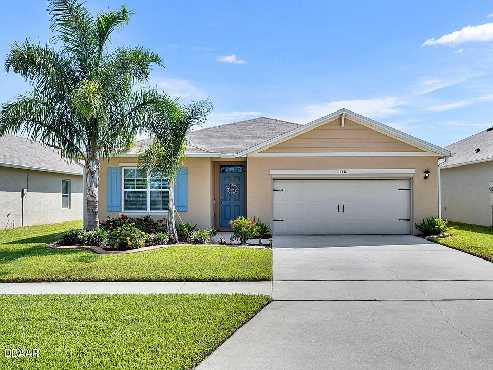 Under contract- accepting backup offers. Experience the Florida lifestyle in Edgewater! Have you dreamed of living close to the water? Do you want the convenience of living in the city but only 15 minutes from the beach? Well, this is the home for you! The Cali model is one of Dr. Hortons most popular floorplans with 1846 square feet, suitable for a first-time homebuyer, growing generation or second home. Featuring 4 bedrooms and 2 bathrooms with an open concept, a 2-car garage, and exceptional views of the pond! Do you work from home? No problem, make one of the bedrooms your office! This home has plenty of space and offers a large primary bedroom with a walk-in closet, water closet and dual sinks. Upgrades include a motorized garage door screen, landscape curbing, gorgeous queen palms, a screened in lanai, beadboard added to the walls in kitchen, dining, and living room for style, recent interior paint, and new carpet in dining room, living room and primary bedroom. Imagine relaxing on your screened in lanai overlooking the pond! Grab your favorite book, coffee or beverage of choice! Entertaining? The kitchen has an island for additional seating, and a pantry. Short commute to I-95, Whistle Stop Park, New Smyrna Beach, and stores. Make your appointment today to see what this home has in store for you!