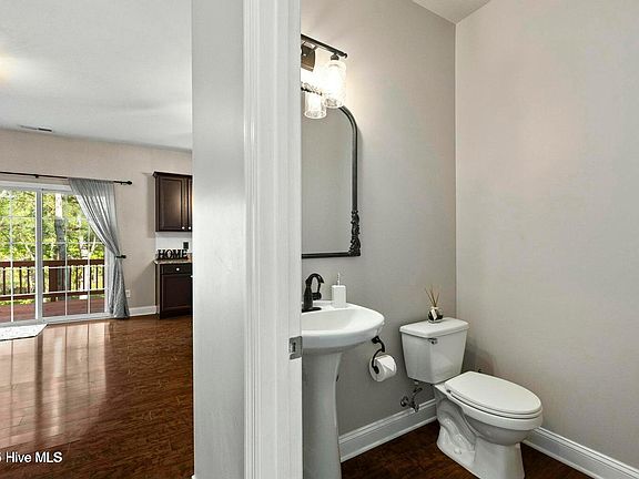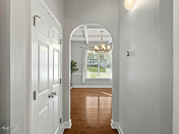 Experience coastal living in this beautifully maintained 3-bedroom, 2.5-bath home with a bonus room, set on a spacious 0.79-acre lot. Just 4 minutes from the beach, the property offers direct water access to the Intracoastal Waterway via Mill Creek, perfect for crabbing, kayaking, or simply relaxing with serene waterfront views. Featuring an open Americana-style floor plan, this home is designed for both entertaining and everyday living. The kitchen is highlighted by granite countertops and flows seamlessly into the living spaces, creating a warm and inviting atmosphere. This home has many upgrades from the original build in 2010 which includes new lighting, Google Nest both upstairs and downstairs, new faucets, new hardware, etc. Conveniently located just one stoplight from CVS, grocery stores, and the gym, and only minutes from base, you'll find everything you need within easy reach. Recent updates include brand new carpet 2024, fresh interior paint, freshly painted back deck, and new AC units installed in summer 2023. Outside, the property offers a beautiful woodsy yard with property lines extending directly into the water, providing the perfect setting for a future dock. With a low-maintenance HOA (240/annually), you'll enjoy peace of mind while taking full advantage of this rare waterfront opportunity. This home is turn key, ready for its next family.