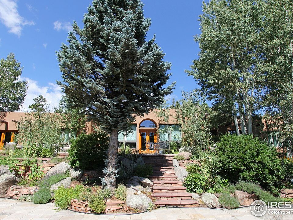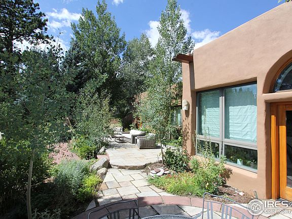 Nestled in the heart of the mountains just minutes from Downtown Boulder, Sweethome Ranch is a rare sanctuary spanning 40 fully fenced acres-bordered by BLM land and National Forest for unmatched privacy and natural beauty. This enchanting estate invites you to explore vibrant wildflower meadows, majestic groves of Douglas Fir, Blue Spruce, and Aspen, all nourished by perennial springs that meander through the land. At the center of the property stands a stunning Pueblo-style residence, crafted with authentic adobe brick and plaster walls, hand-hewn log beams, and rich Saltillo tile floors with many details thoughtfully sourced from New Mexico. The main living area is a warm and inviting space that seamlessly connects a cozy family room, elegant dining area, and fireside lounge, all anchored by a chef's kitchen. Here, custom blue beetle kill pine cabinetry, premium appliances, and a generous butcher block island create a culinary space as functional as it is beautiful. The primary suite offers a private retreat with a spa-inspired ensuite bath featuring a walk-in shower, soaking tub, built-in storage, and a serene sitting room. Additional spaces include a charming library with built-in shelving, a guest bedroom, a flexible study or non-conforming bedroom, and a spacious mudroom. A wine cellar closet, oversized pantry, and laundry room add to the home's thoughtful design. Built for energy efficiency, the adobe construction is enhanced by solar hot water in-floor heating and a powerful 9.44 kW solar PV system. Beyond the main house, the estate includes a detached two-car garage with an upper-level studio, a 1,600-square-foot barn with loft and full in-law apartment, a loafing shed, and level pasture areas ideal for equestrian or agricultural use. Sweethome Ranch is more than a property-it's a legacy of character, craftsmanship, and serenity. Come experience the magic of this extraordinary mountain retreat.