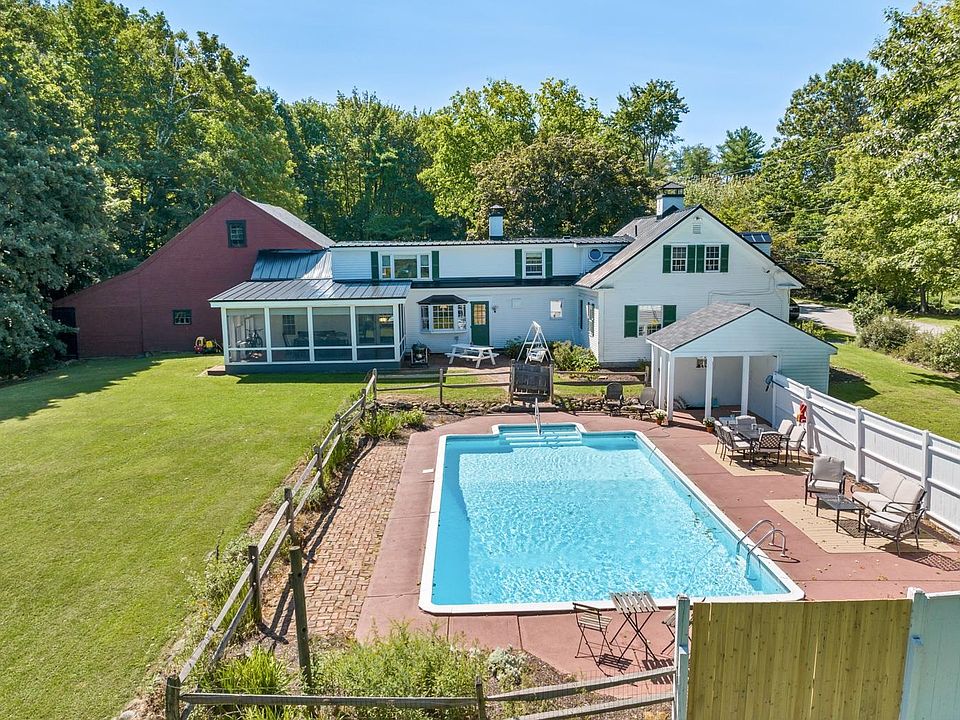 Step into History at 136 Old Prescott Hill, Laconia NH Nestled in Laconia, New Hampshire, 136 Old Prescott Hill offers a unique blend of vintage charm and modern luxury. This historic property features a three-bedroom farmhouse with an ensuite bath and sauna in the primary suite. The open kitchen, living room, private office, dining room, and a fireplace create an elegant and cozy atmosphere with space to share. The property includes an attached classic barn, a detached two-car garage with an extra storage (car sized) slot plus EV charging outlet, an inviting in-ground pool, and a pool house with a changing room. Outside, fruit trees, a spacious yard, and mature trees provide a serene setting. Conveniently located near major transportation corridors, this historic haven seamlessly connects you to both the past and the present. Your Historic Haven Awaits at 136 Old Prescott Hill. This property is more than just a home; it's a connection to history. Contact us today to experience the magic of this unique property and make it your own.