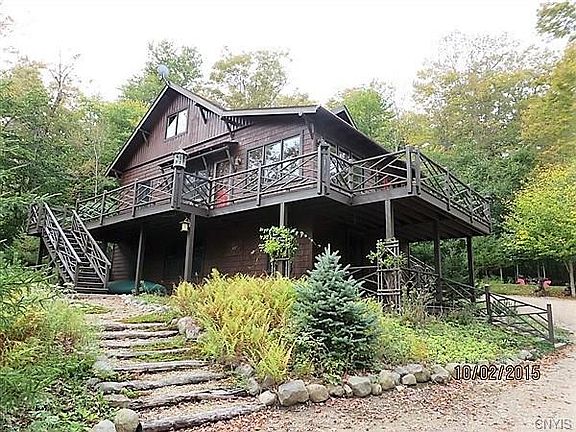 WEEKLY RENTAL- Elegant Rose is the premier luxury rental, situated on the summit overlooking the Fulton Chain of Lakes. First level has a bar, entertainment room, a bedroom and full bath. Second floor has the dining room with doors opening to a wrap around deck for stunning views, a modern kitchen and living room with wood-burning fireplace. Also a master suite with Jacuzzi bath, and separate half bath. Third floor has two additional bedrooms, full bathroom and meditation room. Private location being on a dead-end. Enjoy lake-rights to a private beach and being nearby to all town attractions.