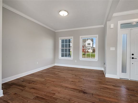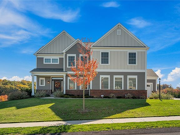 Stately exterior, open floor plan, wonderful amenities, and level rear yard in Hickory Glen. Hardwood throughout the open main level. Living room includes a wall of windows and gas fp w tile surround. Center island kit boasts quartz counter tops, tile backsplash, 36" gas cook top w range hood, double ovens, and a delightful walk-in pantry. Dine casually in the bright morning room or formally in the dining room. Primary suite w tray ceiling, large walk-in, and bath with dual bowl vanity, soaking tub, and tile shower w rain head. Guest suite w vaulted ceiling, private full bath and walk-in closet. Addit bdrms each include vaulted ceilings, along with a compartmentalized, shared bath. Upper level home office. Expansive daylight lower level family room w access to the covered Techo-bloc patio overlooking the level yard with fencing. There is also a full bath. Additional flex space with full windows stands ready for future finishing. Trex deck w RainEscape system. 3 car attached garage.