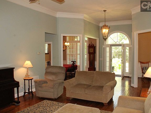 Located in one of Chapin's most desirable places to live, 136 Pebblebranch Drive. This Southern Living Homes floor plan (The New Albany) is an all brick, all one level, 3 bed, 2 1/2 bath, with 1930 sqft on 2 acres! Need more room? No problem. Blue prints available for up to an additional 742 sqft addition upstairs, totaling 2,672 sqft. Other amenities and features include hardwood and tile flooring, corian solid surface counters, high ceilings, heavy molding including wainscoting, home office or library, household water filtration, gas logs, large white front porch columns, wrought iron railings, lush landscaping, open floor plan, jacuzzi tub, paved circular driveway and more. Mature hardwoods and privacy, award winning Chapin Schools!