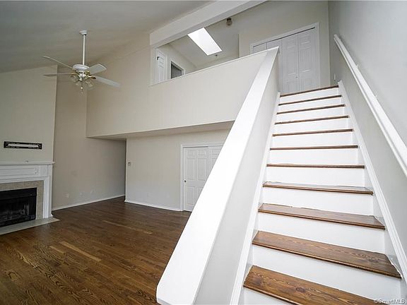 Light-filled and spacious 2 Bedroom, end-unit townhome in the desirable Lakewood complex! This is one of very few units with a large (2'x24') storage room inside the unit. Vaulted ceilings greet you in the great room that also features a wood-burning fireplace and sliders to the balcony. You'll also be first to walk on the brand-new red oak hardwood floors that run throughout both levels of the home. The kitchen is open to the dining room and and has a double door pantry. An updated half bath and coat closet complete the main level. Upstairs you will find the master bedroom with walk-in closet, separate sink/vanity and access to adjoining full bath, There is an additional generously-sized bedroom, laundry closet and skylight also on the upper level. One reserved parking space marked 76 directly in front of the unit and ample visitor parking immediately adjacent. Lakewood complex also features a pool and dog-walking area and is minutes from schools, shopping and major highways! (Buyer did not perform)