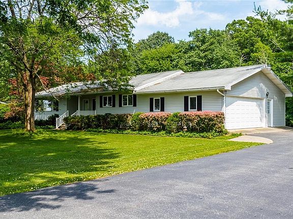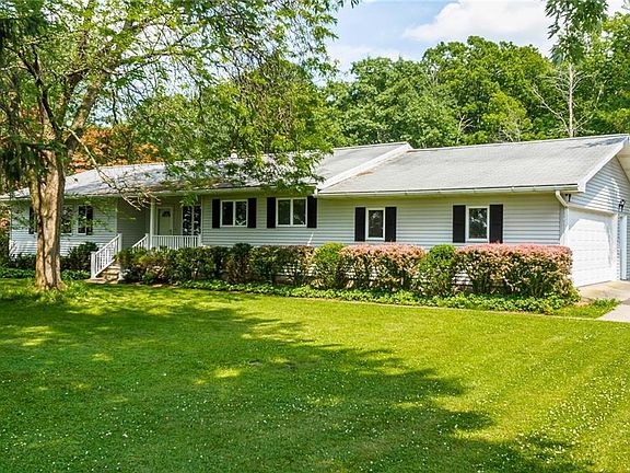 Spacious & unique 3 bdrm ranch with master bath. Kitchen in front of home. Cherry kitchen cabinetry with solid surface countertops. First floor laundry. Cherry hardwood floors in foyer, living room dining room combination and all bedrooms. New tub surround in main bath. Nicely finished rec room in lower level. 720 sq ft side loaded garage with mechanics pit which can easily be converted to staircase to full basement. Great closet & storage space. All appliances to remain. Woodburning fireplace in living room with sliding glass doors to southern exposed backyard. Heat & electric average $176 over last 13 months. Delayed negotiations until Sunday , 7/14 at 6pm