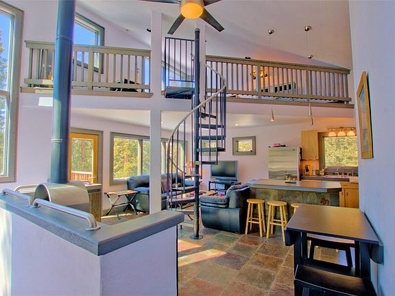 Huge Price Reduction! This fully furnished one-bedroom plus loft cabin, boasting a large attached 2-car garage, awaits just minutes from Fairplay amidst a picturesque setting, nestled among the trees near the edge of the Pike National Forest! Upon entry, a beautiful foyer beckons you into the inviting great room, where a wall of windows offers a peaceful view of Sheep Mountain amidst the tranquil pines. The cozy ambiance is further enhanced by an efficient wood stove and in-floor heating, supplemented by ample solar warmth. The Jack and Jill bathroom features a thoughtfully designed couple's shower. Conveniently located approximately 30 minutes away are world-class skiing opportunities in Breckenridge, as well as thrilling rafting adventures on the Arkansas River. The surrounding area offers a plethora of outdoor activities including cross-country skiing, snowmobiling, hiking 14ers, ATVing, snowshoeing, hunting, and fishing, all set amidst the stunning landscape of South Park. No HOA and, with a completed septic system inspection and pumping, this property is move-in ready for immediate occupancy!