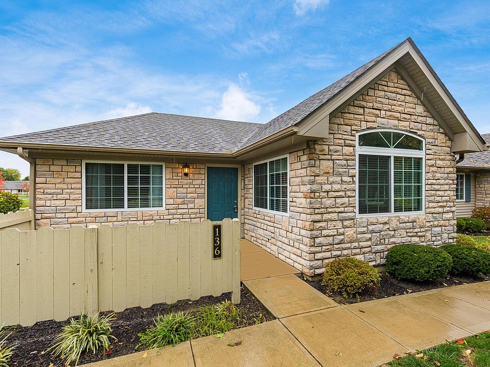 **Price Adjustment**Welcome to this 2 bedroom, 2 full bath, open spacious floor plan with gorgeous cathedral ceilings. You will love the 4 Seasons room that is built off of the family room and over looking the wooded lot. Spacious owners suite with tray ceiling, extra large walk-in closet and private bath, convenient laundry area, granite counter tops in the kitchen, stain steel appliances, New gas stove, spacious eating area with a breakfast bar. The private patio is so inviting..oversized and plenty of room for entertaining. The fully drywalled garage also offers a HUGE storage area for all of your belongings. The Community leasing office is available for your use at no charge! New Ac unit!!! HOA fee covers snow removal, lawn care , and more! Must see this lovely home!!