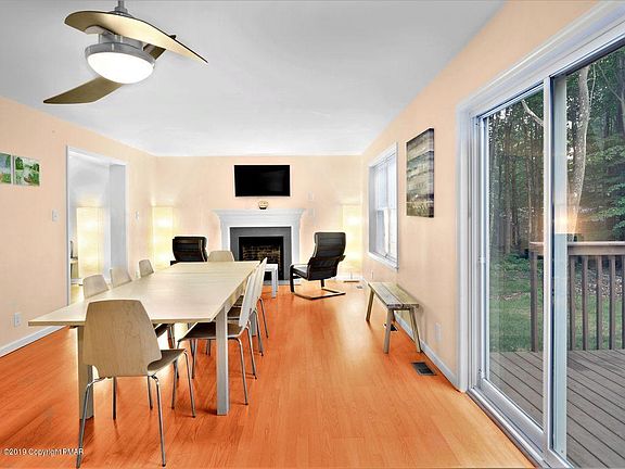 Spacious colonial on 1.12 acre lot in quiet, wooded development in Long Pond, features master suite with walk in closet and 3 additional bedrooms all on the 2nd floor. Kitchen island, dining/sitting area with propane fireplace, living room, engineered hardwood flooring, laundry room, 2 car attached garage. Large rear deck for entertaining, with a level yard. All furniture, appliances and kitchen items remain. Linens are NOT included and will be removed by seller. Schedule your showing appointment today!