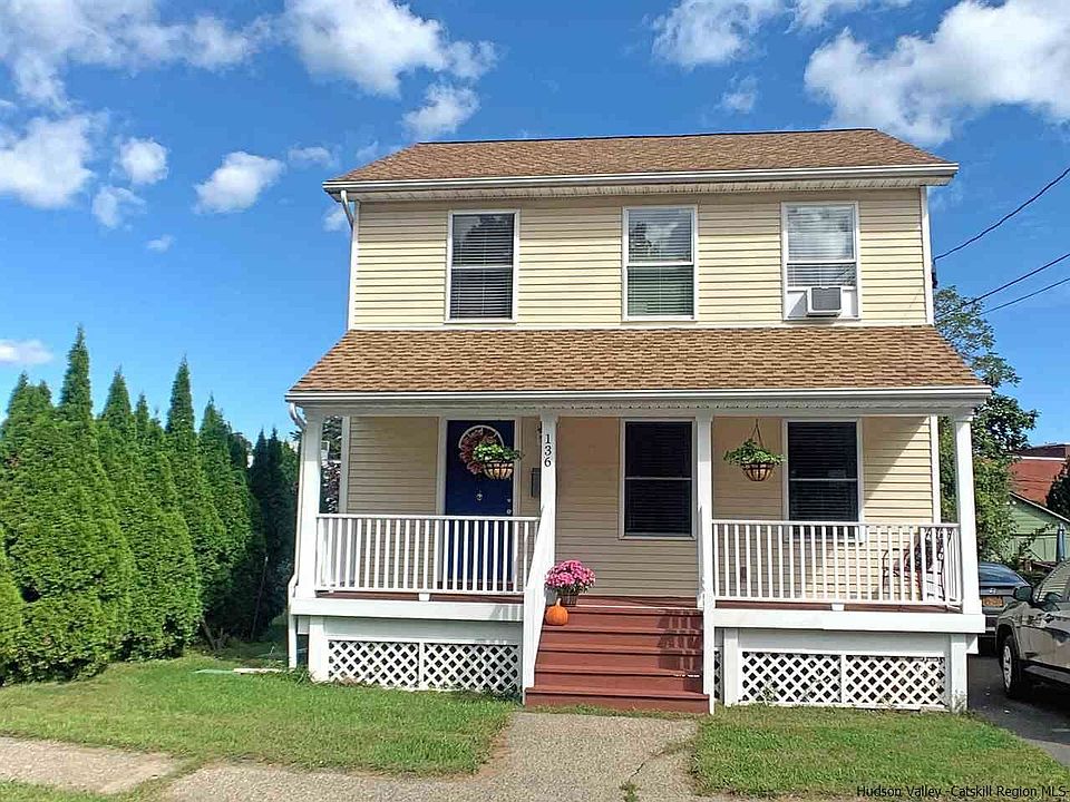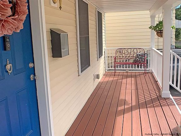 Welcome to the charm of Kingston with a newer farmhouse (c. 2009). Step off a lazy front porch into an easy circular flow on the first floor (LR, DR, Kit) with hardwood floors throughout. There's a 1/2 bath in the hall and plenty of room to entertain. Just off the country kitchen, which has loads of counter space, is a door out to a great back yard for easy BBQing, a quick game of Bocce, or run out to pick herbs/vegetables from the existing raised bed garden area while you make a gourmet meal! Lots of room in the grassy back yard, with a gardening shed already there for tools, and storage. You'll have easy 2-car off-street parking in your own driveway. This 3 bedroom home has a HUGE full bath on the second floor. Everything is light filled and in mint condition. You'll find closets in every room. And, there is a bonus--an oversized basement--with laundry and very high ceilings. Built on a rock solid, dry poured-concrete foundation, this massive space lends itself to become a media room, art studio, or extra play space. More storage then you'll ever need. With newer mechanicals, this is a move-right-in, stress-free situation. Don't forget about a fantastic Kingston location. Just a few minutes walk to everything that is Uptown Kingston and the Stockade District: coffee at Rough Draft, dinner at The Kinsley...and many, many restaurants and shops. This home is in the George Washington Montessori School district and very near the Grocery Co-op, The Anchor bar, and the gracious and historic Kingston Library, and Kingston Court House that inspired our US Constitution....etc., etc. Keegan Ales is just a couple blocks away! This home has been immaculately maintained and loved, and is waiting for your personal touches. A pleasure to show and see.