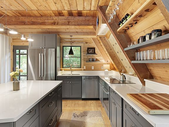 Iconic A-Frame Retreat with Toccoa River Frontage in Suches, GA! Discover the perfect blend of rustic charm and modern luxury in this stunning 2-bedroom, 2-bathroom A-frame home, nestled in the serene beauty of Suches, Georgia. This isn't just a house; it's a meticulously updated sanctuary designed for comfort and connection with nature. Step inside to discover a thoughtfully renovated kitchen (2022) featuring updated appliances, perfect for your culinary adventures. Enjoy the cozy ambiance of a new vented gas fireplace (2023) and the year-round comfort provided by two efficient ductless split HVAC units (2021). The bathrooms offer a touch of indulgence with luxurious heated tile floors. Peace of mind comes with new 400 Series Andersen windows (2017) throughout, ensuring energy efficiency and abundant natural light, plus a whole-house water filter. Outside, enjoy the meticulously designed hardscape and landscape improvements (2021), which create beautiful outdoor living spaces. Practical additions include a 20x20 garden shed for all your tools and hobbies, a 20x20 carport with a convenient 220V EV car charger, and both refrigerators, a washer, and a dryer that convey with the home. The ultimate draw? This unique property boasts two lots with private Toccoa River frontage, offering unparalleled access to fishing, kayaking, and riverside relaxation. Directly across the river, the vast expanse of the National Forest provides endless opportunities for hiking and exploration right from your doorstep. This A-frame is more than a home; it's a lifestyle.