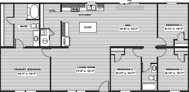 Beautiful 4 bedrooms 2 bath with living room, family room and dinning area. Open concept floor plan, great for entertaining, room for large furniture or whatever you might have planned. Kitchen comes with an upgraded back splash, faucet, refrigerator, dishwasher, range and island. Utility room is large and has washer and dryer connections, plenty of room for your laundry needs. The home has smart panel skirting with a 36 inch wainscot with board in batting on the front, 20' x 20' carport, 10'x10' front deck and a 10'x12' covered back deck. Living room and primary bedroom have been upgraded with ceiling fans. Primary walk in closet is a generous 5'x12'.
