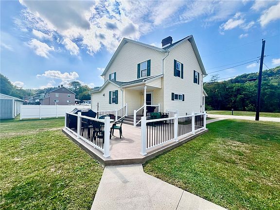Prepare to be impressed by how meticulous this home is! This super neat and clean 4 bedroom 1 bath home in Albert Gallatin School District steps from the river, it offers newer flooring throughout the main level, hardwood flooring under carpeting on main and upper levels, newer main level full bath, huge eat in kitchen matching stainless appliances, plus spacious formal dining room, and first floor laundry. It also has a big level yard, 2 car garage, newer sidewalks and rear patio, covered front trex decking, newer 40 year roof, newer ac and furnace & so much more!