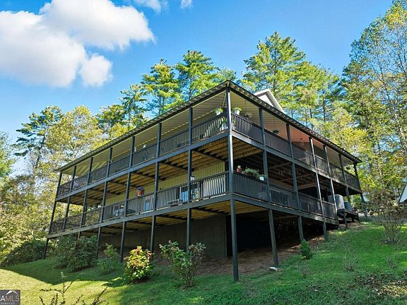 Escape to the mountains and discover this private 5-bedroom, 3-bathroom retreat. Beautiful home on 8.08 acres nestled on a peaceful mountain property with two creeks and a perfect blend of flat bottom land and wooded privacy. This ranch on a full finished basement offers incredible space and flexibility, with each level boasting its own three-sided wrap-around covered porch-ideal for morning coffee, evening relaxation, and taking in the mountain air. The main floor welcomes you with an open living room featuring a wood-burning stove, creating a warm, inviting space that flows seamlessly into the kitchen and dining area. The large primary suite includes a spacious ensuite bath with double vanities, separate tub and shower, and plenty of room to unwind. A second bedroom, full bath and laundry on the main level make this layout ideal for guests or family. Downstairs, the fully finished terrace level expands your living options with a second kitchen, two additional bedrooms, den, flex room, a full bath-perfect for multi-generational living, rental income, or a private guest suite. Outside, enjoy a two-car carport, beautiful mountain surroundings, and the sound of running creeks that add to the property's serene atmosphere. Whether you're dreaming of a mountain homestead, vacation getaway, or full-time retreat, 136 Ross Road offers the best of North Georgia living-privacy, space, and natural beauty all in one.