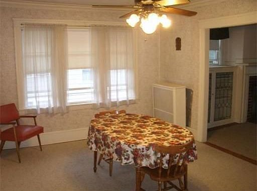 Very nice 2nd floor apartment in a great location-right across the street form Elm Park. Close to shopping, highways, and restaurants. 2-3 bedrooms. One is small and would be great for an office. Built in cabinets in the dining room, updated kitchen, hardwoods in the bedrooms and wall to wall carpet in the dining and living room. Enclosed front porch overlooks the park, and another enclosed porch in the rear. Backyard is available as a common area. Working FP in living room. A really nice apt!