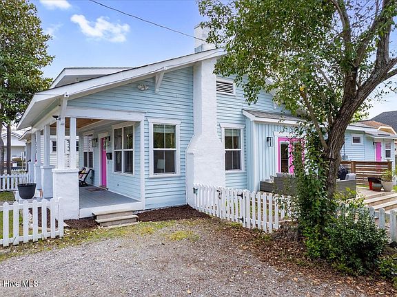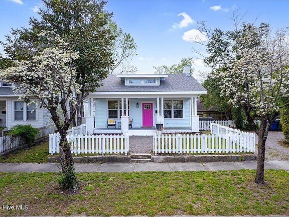 Charming, modern, and full of character—this beautifully updated bungalow in the heart of Wilmington blends historic charm with contemporary upgrades. From the inviting front porch with its statement pink door to the spacious backyard retreat, this home is designed for comfort and style. Step inside from the lively street to discover a bright, airy, and peaceful living space with high ceilings, abundant natural light, and a thoughtfully designed open floor plan. The stunning kitchen boasts sleek stainless steel appliances, white cabinets, subway tile backsplash, and a large island perfect for gatherings. Floating wooden shelves add a warm, custom touch. The backyard is an entertainer's dream, featuring a newer built deck, and plenty of space to relax or play. With a fully fenced yard, it's perfect for pets or private outdoor living. A rare find in this area, the home offers highly sought-after off-street parking—ensuring convenience, security, and ease of access, no matter the time of day. Major updates give you peace of mind—this home features a roof, water heater, and HVAC system all from 2019. Location is everything, and this home delivers! Just 5 minutes to the Cargo District, less than 5 minutes to downtown's shops and restaurants, and only 25 minutes to Wrightsville Beach—you're never far from the best that Wilmington has to offer. Schedule a tour today !