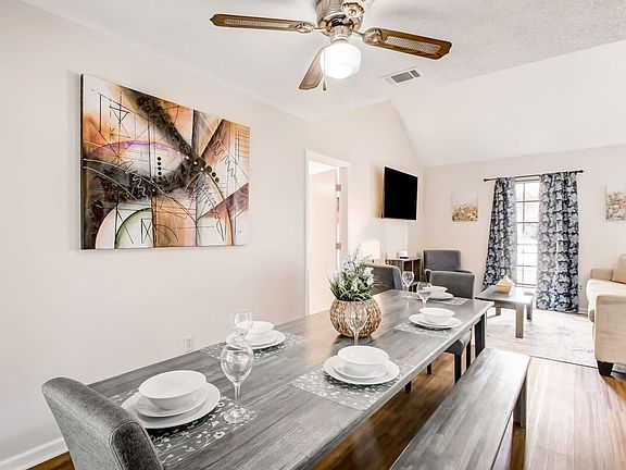 Welcome to Robinhood Cottage, a charming 4-bedroom, 2-bathroom home that comfortably sleeps 12. Nestled in a peaceful residential neighborhood, this home offers a quiet retreat with easy access to Savannah's highlights. Enjoy the convenience of major highways and interstates nearby, making exploration a breeze. Guests enter through a digital keypad into a welcoming living space featuring a queen sleeper sofa and a large Smart TV. The living room seamlessly connects to the dining room and a fully equipped kitchen, complete with ample counter space and essential cookware and dinnerware. The home boasts four bedrooms: one with a king-size bed, two with full-size beds, and one with two full-size beds. Both bathrooms offer a shower and tub combination. Relax in the fenced backyard with a spacious screened-in patio and a charcoal grill for outdoor gatherings. Pets are welcome with a non-refundable pet fee. Pets must be crated when left unattended and are not allowed on furniture or beds. All pet waste must be cleaned up from the yard. Additional cleaning fees apply if pet hair or waste is found in the home or yard. Situated in a residential neighborhood, Robinhood Cottage provides easy access to Highway 17. While Uber, Lyft, and taxis are available, driving is recommended for the best experience. The dishwasher is currently broken and is being replaced. Enjoy contact-free check-in with a digital door code provided at check-in. Guests must be 21 years of age to book. A signed rental agreement is required. If evidence of pet hair or waste is found, additional cleaning costs will be charged.