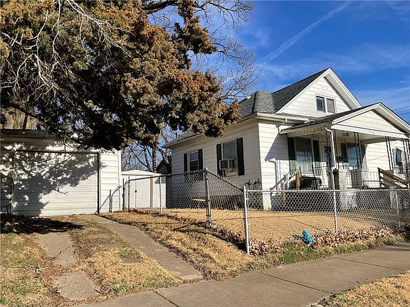 Investor Alert! This two bedroom home has good bones with aluminum siding, newish roof (approximate age 2018), small fenced side yard and front porch. The living room adjoins to the dining room to create a large open living space. The bedrooms each have a narrow walk-in style closet offering storage space and are adjoined by a Jack and Jill style bathroom in the middle. This home sits on an unfinished basement foundation and ready for your touch!