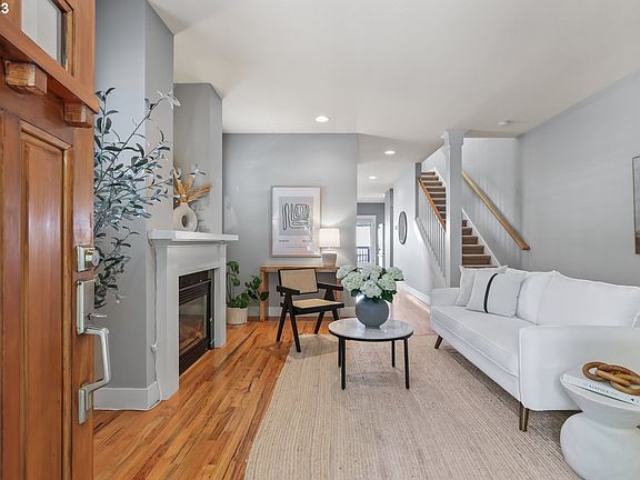 This beautiful attached home sits on a lovely private lot and features a beautiful view of Mount Hood! Although built in 2006, it looks and feels like new with completely updated interior and exterior paint. Gourmet kitchen with quartz countertops and access to the covered deck to enjoy year round! Lovely bright dining area with built-in seating and storage. Three bedrooms, each with its own bathroom. Flexible lower-level space is plumbed for a kitchenette, which makes it perfect for extended family, potential AirBnB, or ADU with a separate entrance from the garage. Enjoy the perks of an Earth Advantage Certified home, with a whole house air filtration system. Very convenient to shopping, dining, public transportation, Mt. Tabor Park, and all that Montavilla and Mt. Tabor have to offer! [Home Energy Score = 9. HES Report at https://rpt.greenbuildingregistry.com/hes/OR10146054]