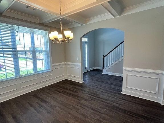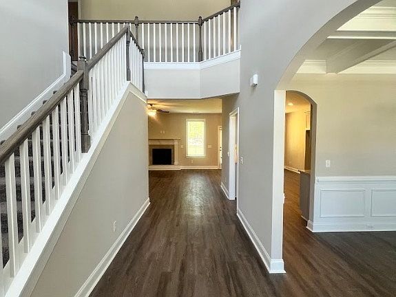 Welcome to the Woodlands! The 2850 plan by Faircloth Homes of Savannah has 5 bedrooms and 3 full bathrooms. As you enter be prepared to fall in love with the 2 story foyer an gorgeous dining room with coffered ceiling. The great room featuring an electric fireplace seamlessly connects the breakfast room and kitchen. The kitchen offers granite countertops, tile backsplash, stainless steel appliances, and pantry. LVP flooring in foyer, dining, great room, breakfast room, and kitchen. One bedroom and full bathroom complete the downstairs. Upstairs you will find the primary bedroom and bathroom. The primary bathroom offers a dual vanity, garden tub, and shower. 3 secondary bedrooms, a bathroom, and laundry room complete the upstairs. 2 inch faux wood blinds, gutters on the front and back of the home, irrigation and sodded yard, covered rear patio with a fan. $5,000 in closing costs with use of a preferred lender. South Effingham schools.
