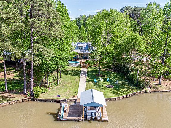 This is the Lake House you've been waiting for! This adorable home located in north Baldwin county is just a few short miles from shopping and restaurants. It sits on DEEP water in a cove just off the heart of Lake Sinclair. Upon arrival you will notice great curb appeal ! Ample parking, custom detached garage, metal roof and Board & Batten Shutters! EVERY ROOM has a lake view!! Inside you will find tasteful updated features, large kitchen with plenty of seating and counter space, and a master Suite on the main floor. TWO nice size bedrooms upstairs PERFECT for your bunk room! From the living room you will walk out onto an oversized entertainment deck and pool overlooking Lake Sinclair. LEVEL lot , Great Views and BOATHOUSE !