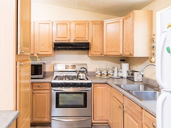 This is a great starter home. Kitchen has been updated with stainless steal appliances. A sliding door out to the backyard brings in extra natural light to the master bedroom. There is a nice covered Patio off of the dining area. The mature backyard has two fruit tree. A conversion of the garage to a room is a bonus feature of this home!