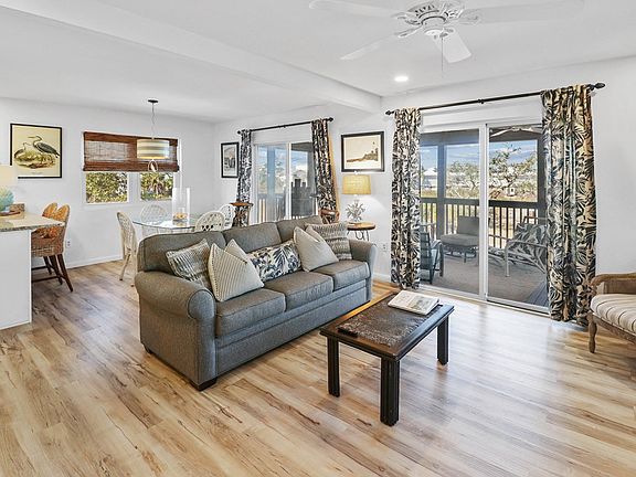 GREAT HOUSE IN THE FIRST BLOCK!!! This wonderful home is beautifully decorated and fully furnished. It was renovated in 2021. Upstairs is master bedroom and bathroom and guest bedroom with bath. There are a set of build in bunk beds in large master for guests (owner will remove theses if buyer request) There is virtually stage picture of bedroom with sitting area! The living area is wide open and opens on to a covered screened deck with water views! Downstairs there is a nice mother-in-law suite, with kitchenette, living area ,bathroom and bedroom area. House has been two rental units in the past and GRI is over $62,000 in 2023