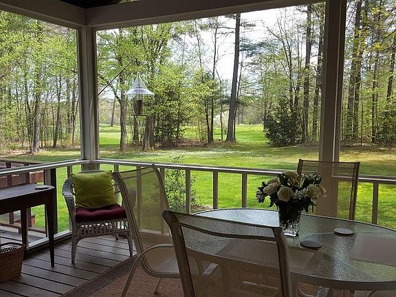 3 Bedroom L Shaped Ranch on the 12th tee of Beaver Meadow Golf Course adjacent to your back yard! Take in the sights and sounds of the neighboring golf course from your back deck and covered porch. The setting to this home is one of many nice features. A two stall garage was added in 2009, new siding/windows/ and perimeter French drain were all added in 2012. The open concept kitchen offers stainless steel appliances, new tile backsplash & a kitchen desk workspace. The front to back dining room & living room is warmed on those cold winter nights by a masonry fireplace. Bamboo flooring leads you down the hall to 3 bedrooms with the primary that overlooks the 3 season porch & level back yard with mature landscaping. A lower level family room provides a nice TV space to watch your favorite game or golf tournament in addition to ample home office space. Also found on this level is a 3/4 bath, laundry room and dedicated storage room. Come tour this home to find a nicely updated & well appointed home in a wonderful setting. This is the home for recreation with cross country skiing & ice skating on the course in the winter, golf in the summer and just down the road Sewalls Falls Recreation area with hiking, canoeing, kayaking & fishing within a half mile. Showings begin 4/9/21.