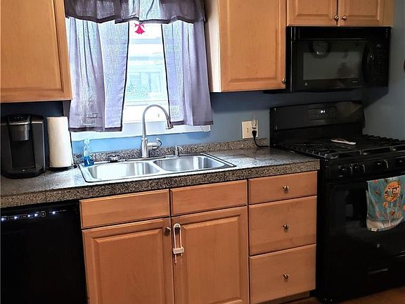 This 3-bedroom/1-bath ranch is located in a quiet neighborhood. It features eat-in maple kitchen with granite countertop and hardwood floor; newer carpeting throughout; main-floor laundry; large living room with bay window; newer windows; 100 amp electric service; covered back patio; large back deck; new front stairs; double lot; pull-down attic; full dry basement; large backyard. Dishwasher and microwave stay.