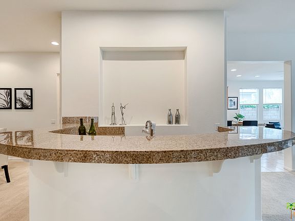 Entertainer's Delight! Spacious home that can entertain a crowd with it's central bar setting that connects to the open plan kitchen and living areas as well as the dining room and flexible bonus room that could be used as a sitting room, home office, den or converted to a 4th bedroom. The massive kitchen island with second sink is ideal for prep space or grand buffets with eating options in the kitchen, formal dining room or al fresco with drop dead west mountain views. Large Master with en-suite bath and walk in closets are at the rear of the home, with the secondary bedrooms in front. High ceilings, generous storage and wonderful floor plan complete the package. All this, in the impeccably maintained gated community of Mission Shores. HOA includes social membership at Mission Hills CC.