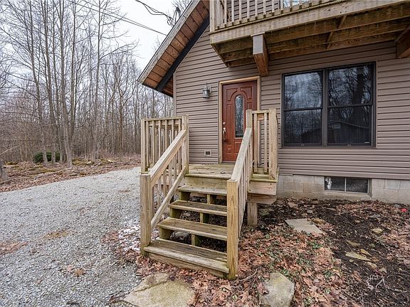 Escape to this adorable rustic chalet tucked away in the highly desirable Bear Rocks community. This charming getaway features two spacious upstairs bedrooms, including a master suite with a private balcony, perfect for enjoying the peaceful surroundings. The open-concept main level seamlessly blends the living, kitchen, and dining areas, centered around a stunning wood-burning stove that adds warmth and character. A full bath on the main floor provides convenience, while the massive deck offers the ideal space for outdoor entertaining on your secluded lot. Located just minutes from Seven Springs, Hidden Valley, and all the Laurel Mountain amenities, this cozy retreat is great for nature lovers and adventure seekers alike!